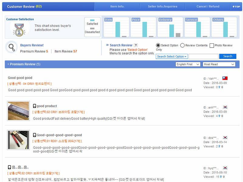 When you search an item, you will see the listing page as shown above. First, click on the “Customer Rating” on the right top to sort according to “High Rating”. Sellers with Power rating are those who earned higher customer satisfaction rating. Once you click to browse the page, under the seller info, if there is a tag states “CS BEST”, that will be even better as the shop has high sale performance on top of the customer satisfaction score. I will try to buy from those which has “CS BEST” tag.
