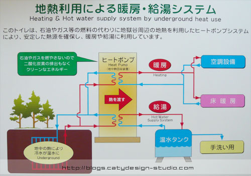 The picture below explains the hot water supply system by the underground hot spring. Click to zoom in.