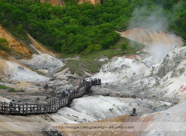 We had no time to pop into the Ainu museum to take a look as it was already 4.15pm and we needed to proceed to one of my favorite view point in Hokkaido: Jigokudani(地狱谷), also known as "Hell Valley". The name sounds scary though. It is a valley just above the town of Noboribetsu Onsen(登別温泉) and is the main source of Noboribetsu’s hot spring waters.